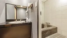 客室のお風呂では、温泉を提供。美肌、血圧の低下、保温効果など、数々の効能がある「いわき湯本温泉」の湯を、心ゆくまで堪能頂けます。
