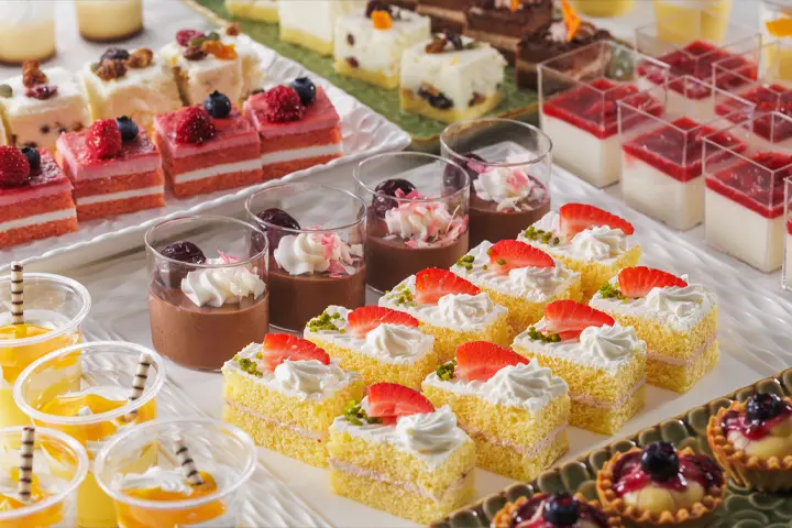 甘酸っぱい苺を重ねたふわふわのショートケーキと、ダークチェリーの香りが広がる濃厚チョコムースなど、華やかな味わいのスイーツを多彩にご用意いたしました。